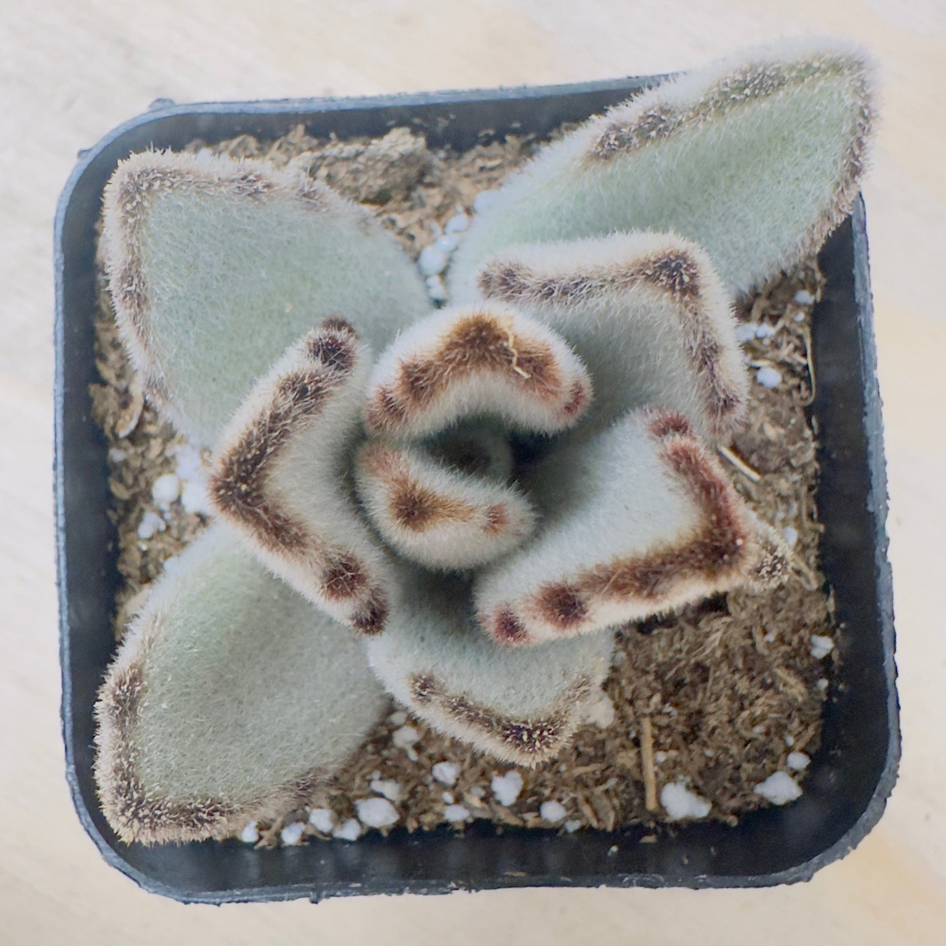 Kalanchoe tomentosa ‘Panda Plant’, also known as Chocolate Soldier, is a fuzzy-leaved succulent native to Madagascar, belonging to the Crassulaceae family. It’s cherished for its soft, velvety appearance and contrasting leaf tips, making it both a tactile and visual delight in collections.